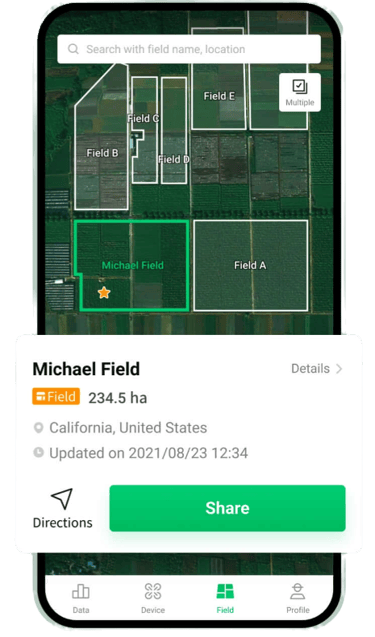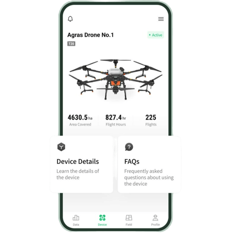 The DJI SmartFarm App provides end-to-end service support for spraying and spreading operations, from data display, device management, field sharing, to tutorials, team collaborations, measurement tools, etc. With the app, you can view data clearly on your Agras drones while controlling and managing your device with superior ease and efficiency.
